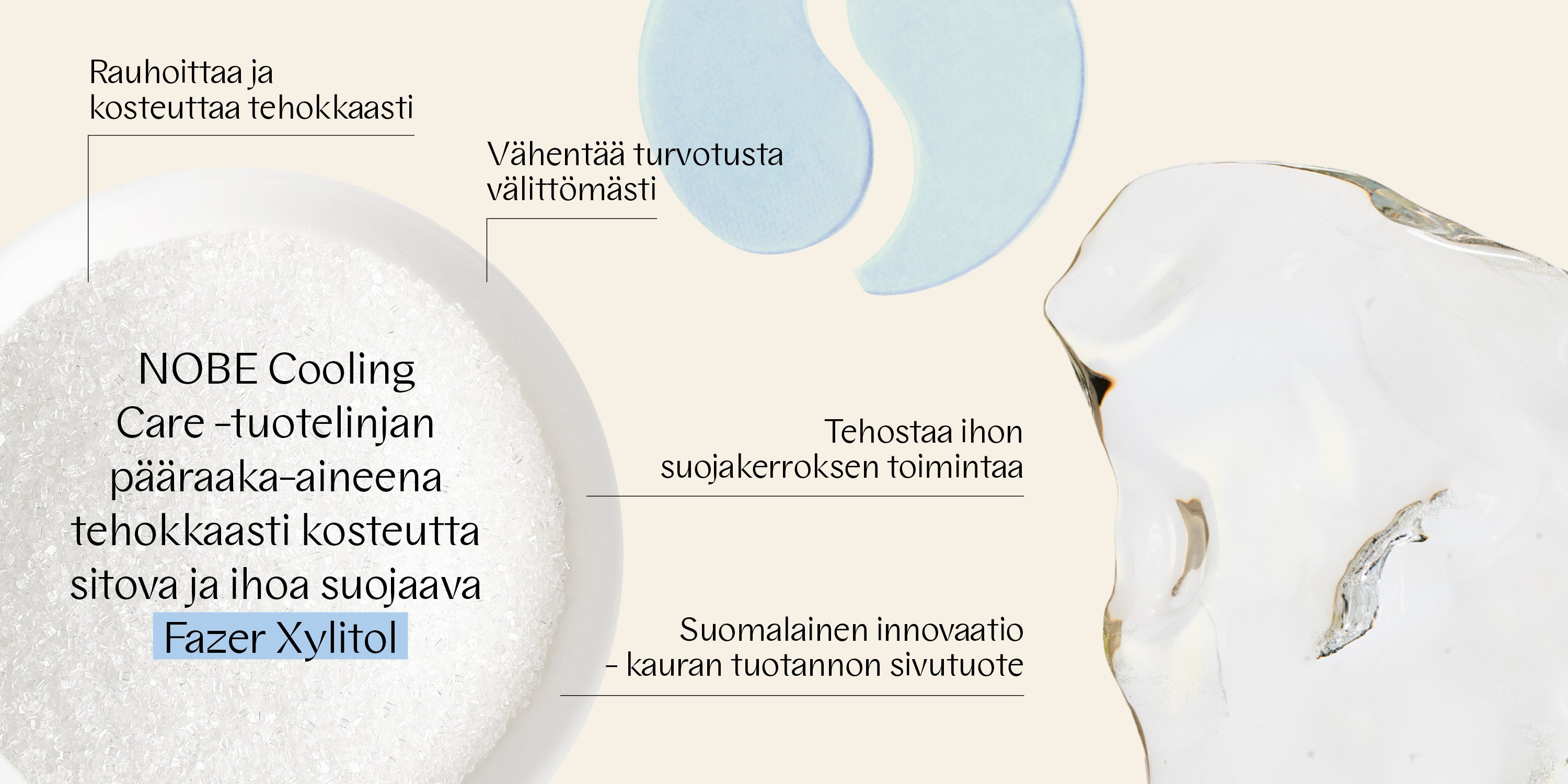 Oodi avantouinnille ja sen turvotusta laskevalle vaikutukselle. NOBE Cooling Care, Arctic Skincare -sarjan teho perustuu Fazer Foodtechin tuottamaan FAZER XYLITOL® -kaurainnovaatioon. Pohjolan arktisen ilmaston viilentävät vaikutukset tuntuvat iholla avantouinnin tavoin; tuotteet viilentävät, rauhoittavat ja syväkosteuttavat ihoa vähentäen samalla turvotusta.
