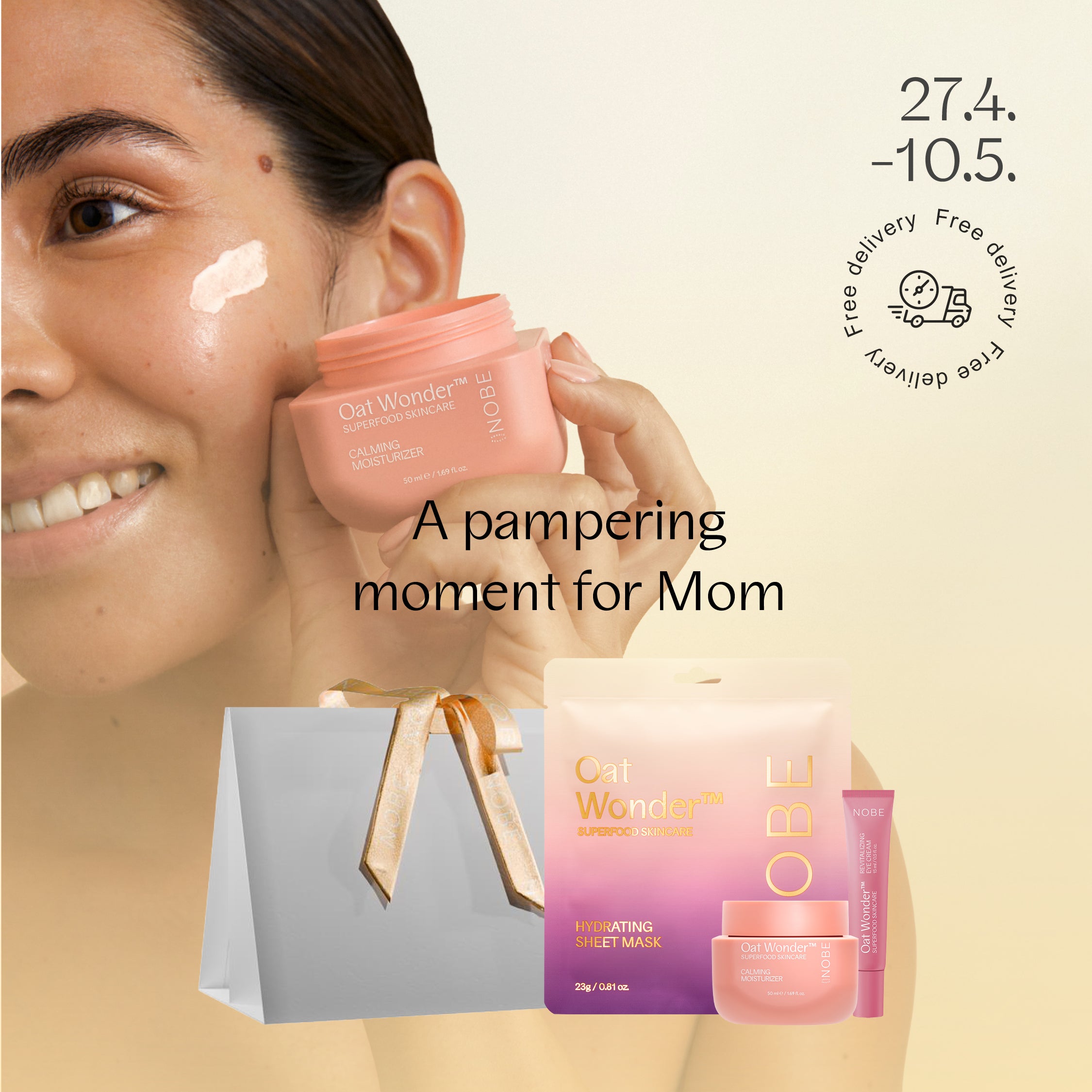 NOBE Oat Wonder® Gentle Cleansing Cream softly cleanses without stripping moisture, removing impurities and light makeup while keeping skin calm, smooth, and hydrated — perfect for sensitive skin in the changing spring season.